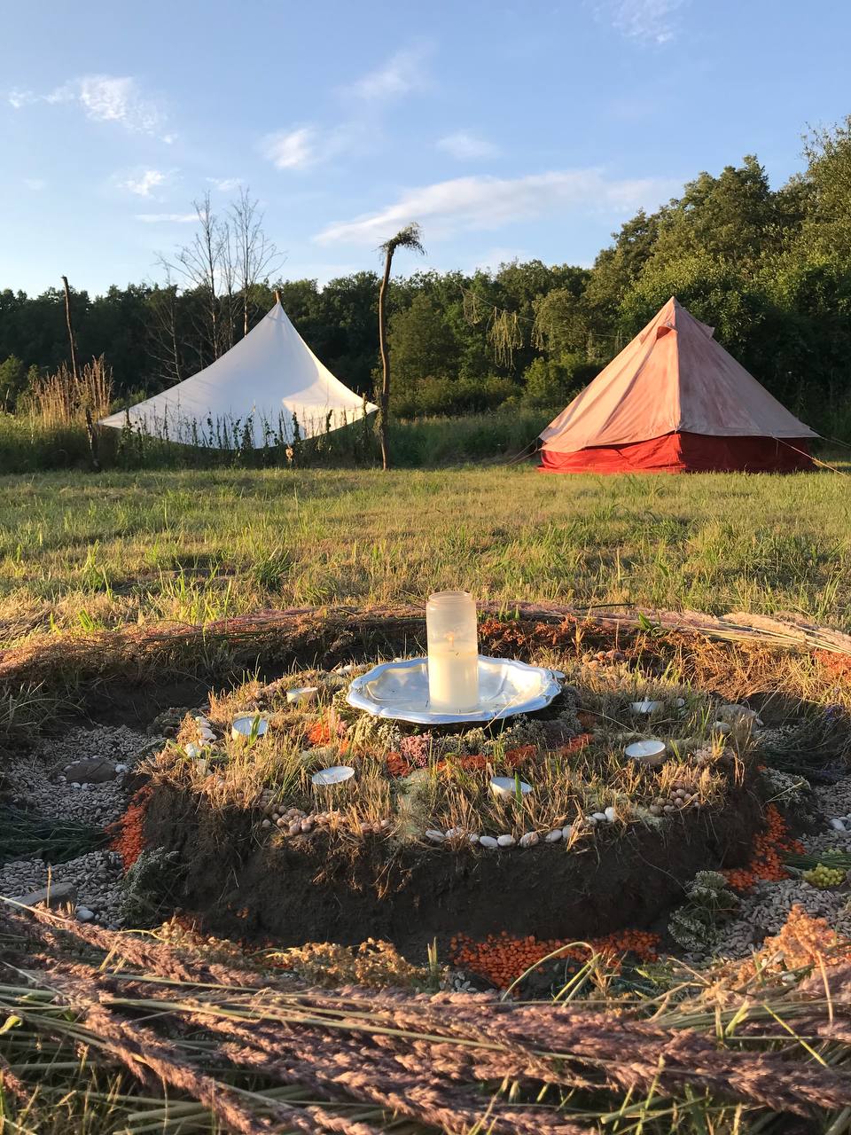Behind the tent there's a big beautiful mandala altar created from seeds carrying the intention of Earth, of humanity, of the collective.